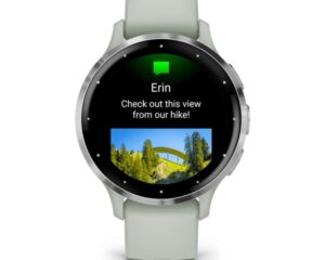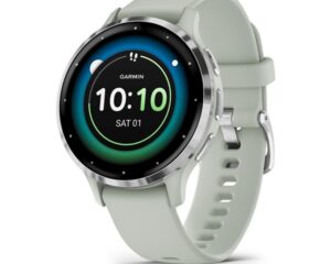 Garmin Venu 3S zsálya, ezüst kerettel, szilikon szíjjal okosóra