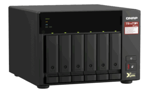 8-bay NAS, AMD Ryzen V1000 series V1500B 4C/8T 2.2GHz, 8GB DDR4 RAM (2 x SODIMM slots, max. 64GB, optional ECC RAM support), 8x SATA 6Gb/s bays, 2x M.2 NVMe PCIe Gen3 SSD slots, 2 x 2.5GbE LAN, optional 10GbE, 2x PCIe 3.0 x 4 slots, USB 3.2 Gen2 Type-A & USB 3.2 Gen1 Type-C ports