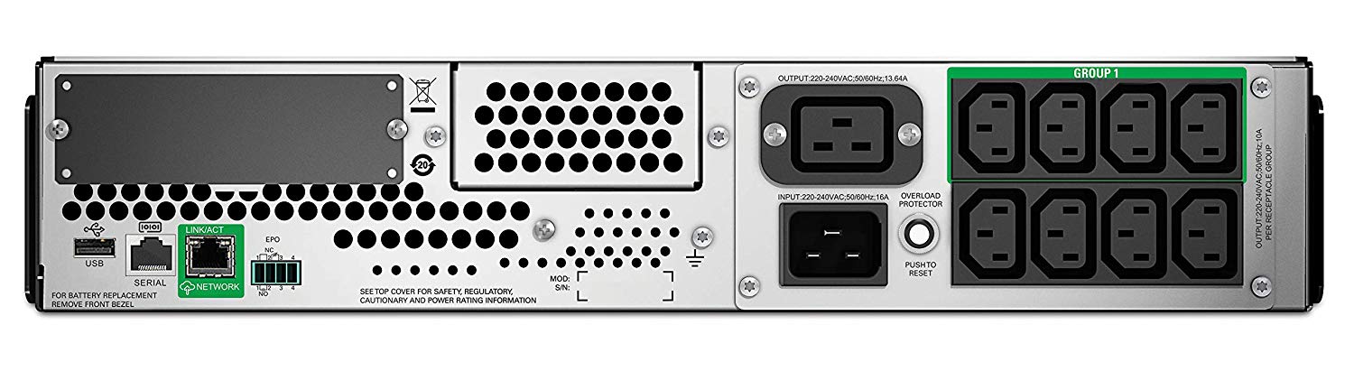 Topológia: Vonalinteraktív, Kivitel: Rack, Szín: Fekete, Teljesítmény (VA/Watts): 2200/1980, Méretek ma x szé x mé mm: 86x 480 x 683, Kommunikációs portok: USB, SmartSlot, Smart Connect, RJ-45 Soros, Bemenet: (1) IEC-320-C19, Kimenet: (8) IEC-320-C13, (1) IEC-320-C19, 3 év garancia