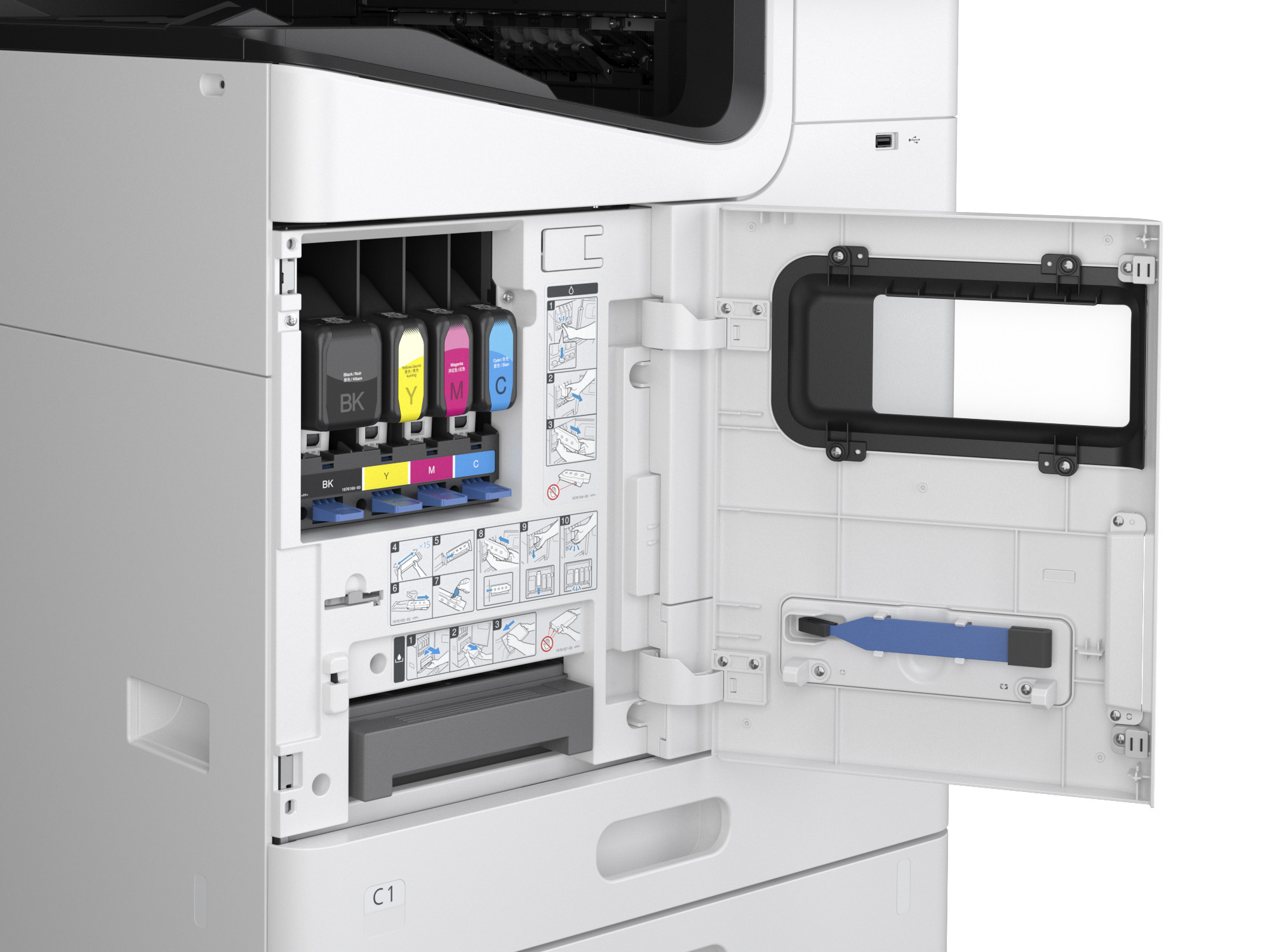 *Színes A3 MFP: nyomtat, beolvas, másol *Nyomtatási sebesség ISO: 50 lap/perc mono/színes *Nyomtatási felbontás: 600 x 2.400 dpi *Színek: T08G1-2-3-4 BK,C,M,Y (Mind PIGMENT!) *DUPLEX (A4/A3, egyszerű irodai papír) *Ajánlott terhelhetőség: 7.200 – 60.000 oldal havonta *Szkennelési sebessége: 60 oldal/perc (mono/színes, egyoldalas) *Szkennelés felbontása: 600 x 1.200 dpi *Szkennelés e-mailben küldéshez, FTP-n küldéshez, hálózati mappába, USB-re, Számítógépre (Epson Document Capture Pro) *Maximális szkennelési méret: 297 x 431 mm *Formátumok: BMP, JPEG, TIFF, multi-TIFF, PDF, kereshető PDF, PDF/A, PNG, Secured PDF *Csatlakozók: Ethernet interfész (1000 Base-T/ 100-Base TX/ 10-Base-T), USB 2.0-A, Vezeték nélküli LAN IEEE 802.11a/b/g/n/ac (WiFi 5) (opcionális), USB 3.2 Gen 1×1 *Papírformátumok:A3 (29,7×42,0 cm), A4 (21.0×29,7 cm), A5 (14,8×21,0 cm), B6, B5, B4, Letter, Executive, C5 (Boríték), Felhasználó által definiált, C4 (Boríték), DL (boríték), A6 (10,5×14,8 cm) *Papírtálcák össz. kapacitása: 1.150 lap (2 x 500 + 150), ADF kapacitása: 150 oldal, kiadó tálca: 500 lapos; OPCIÓK: 2 x 500 lapos papírtálcák *Papírsúly: 52 – 300 g/m2 *LCD kijelző: színes, érintőképernyős, 25,7 cm átlójú *Mobil és felhőalapú nyomtatási szolgáltatások: Apple AirPrint, Mopria, Epson Smart Panel App, Epson Connect (Email Print, Remote Print Driver) *Memória: 8.192 MB *A doboz tartalma: Adatlap, Tintapatronok telepítése, Tápkábel, User guide *OPCIÓK: merevlemez, CoverPlus garancia-kiterjesztések, Wi-Fi egység