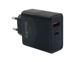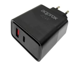“APPROX Telefon töltő – 1db Type-C (USB-C) csatlakozó, 45W, 1.1m kábel, Fekete” a kosárba helyezve. Kosár