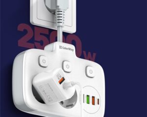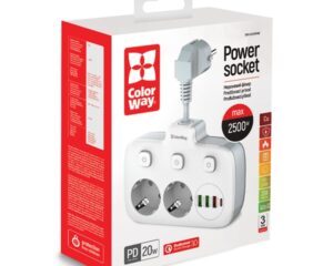 “COLORWAY Hálózati elosztó, CW-CHE64PDW, 6 tápcsatlakozó/4USB (C típusú PD20W + 3USB QC3.0) (38W) Fehér 2M” a kosárba helyezve. Kosár