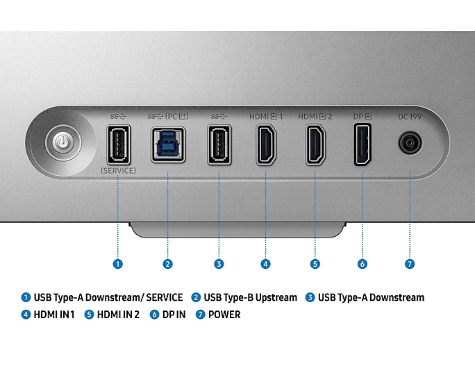 DP1.4 x 1, HDMI2.1 x 2, USB3.1 x 2, USB-B x 1, hangszóró