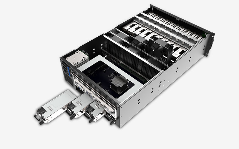 AMD EPYC 3251, 4x DDR4 slot REG ECC max. 512GB, 4x SATA III, 1x M.2 PCI-e Gen3 x4, 10x PCI-e x16, 6x USB 3.0, 2x Gbit LAN, 1x COM, 1600W, 4U rack