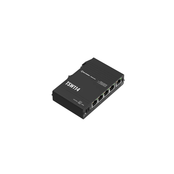 A TSW114 egy megfizethető megoldás a csatlakozások egyszerűsítésére plug-and-play működésével és 5 darab Gigabit Ethernet portjával, amelyek stabil és megbízható kapcsolatot biztosítanak nagy sávszélességű alkalmazásokhoz. Az Ethernet switch előlapi portokkal és integrált DIN sín rögzítővel rendelkezik, így könnyen telepíthető számos ipari környezetben – különösen vezérlőszekrényekben.