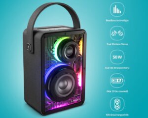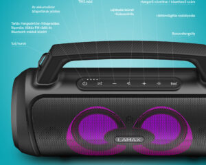 “LAMAX PartyGo1 Mini 30W Bluetooth Karaoke hangszóró vezeték nélküli mikrofonnal” a kosárba helyezve. Kosár