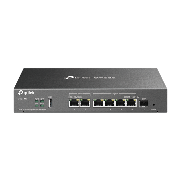 TP-LINK Vezetékes VPN Router 1xWAN(2.5G) +1xWAN/LAN(2.5G) +1xSFP + 4xLAN(1000Mbps) + 1xUSB, ER707-M2